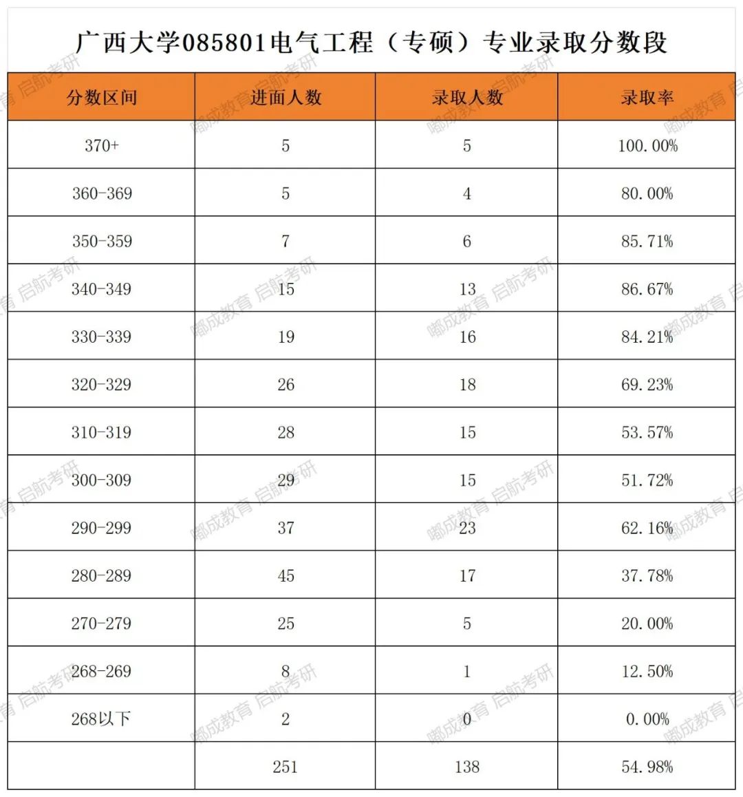 25考研广西大学的电气工程专硕一志愿招满,那么要考多少分才比较稳呢?我们来看看录取数据: