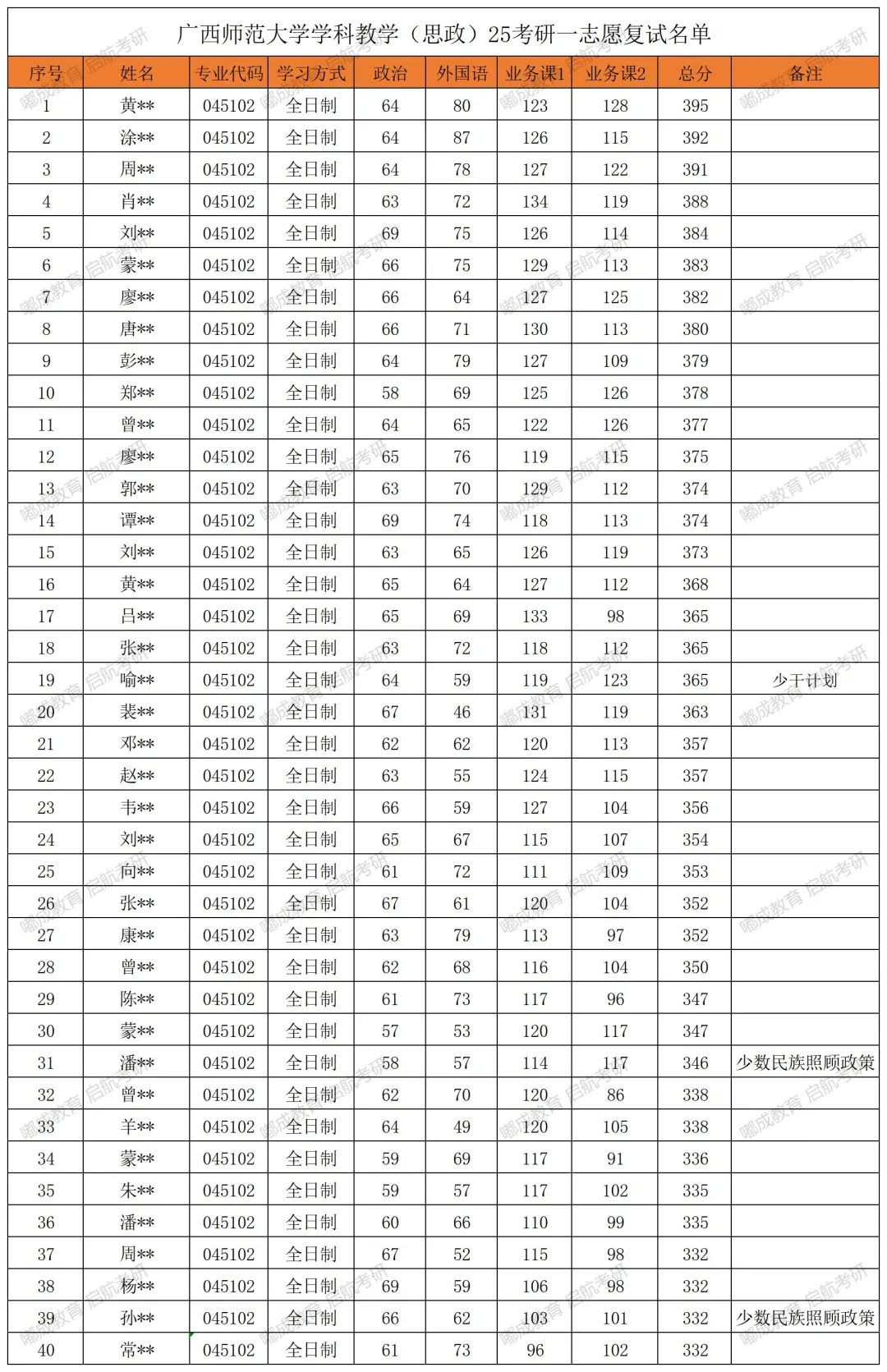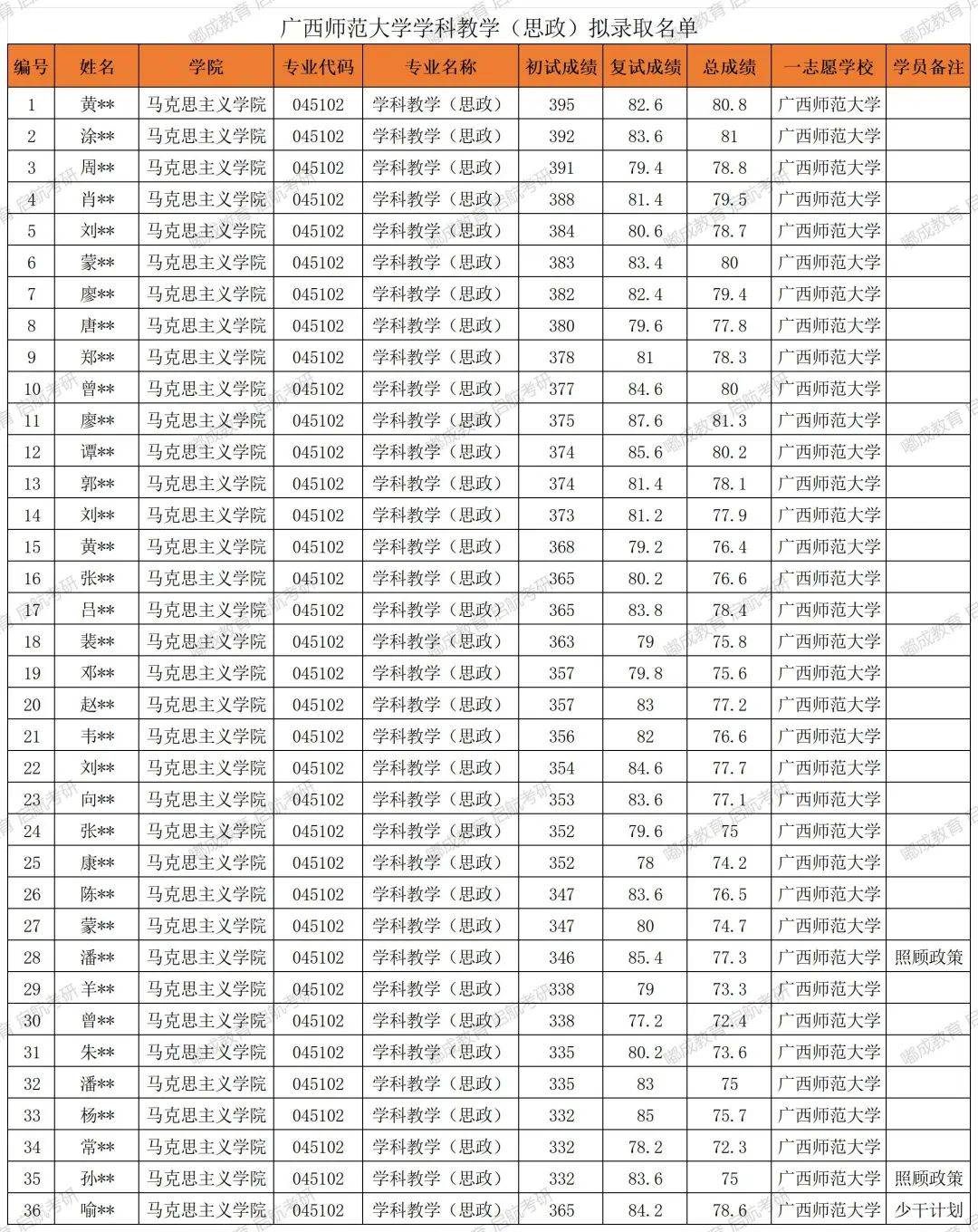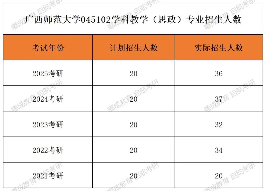 25考研广西师范大学的学科教学(思政)专业录取情况如何?来看看录取数据: