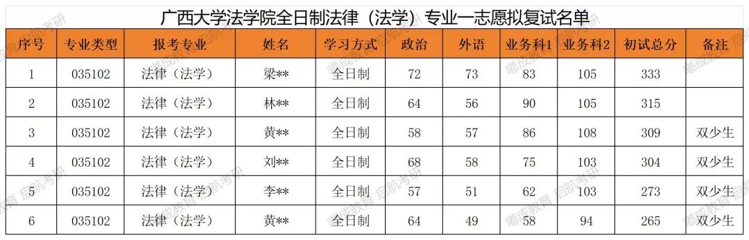 备注说明:文章数据由广西启航考研整理自广西大学研究生院及法学院官网。仅供学习分享,传递积极能量,如有误差/侵权,请联系本公众号进行修改与删除,谢谢!