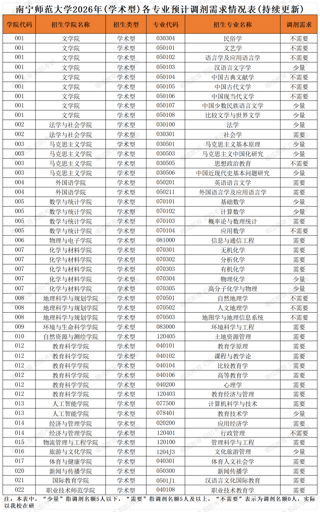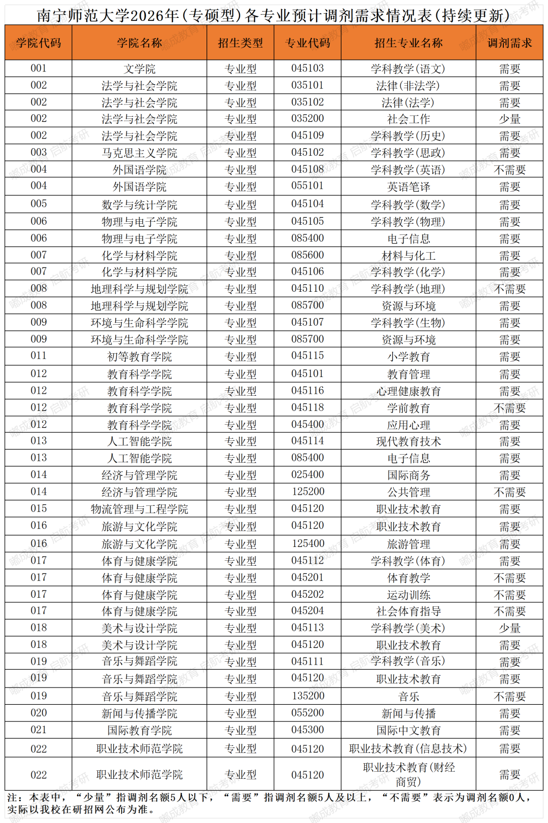 南宁师范大学2026考研各专业缺额情况统计
