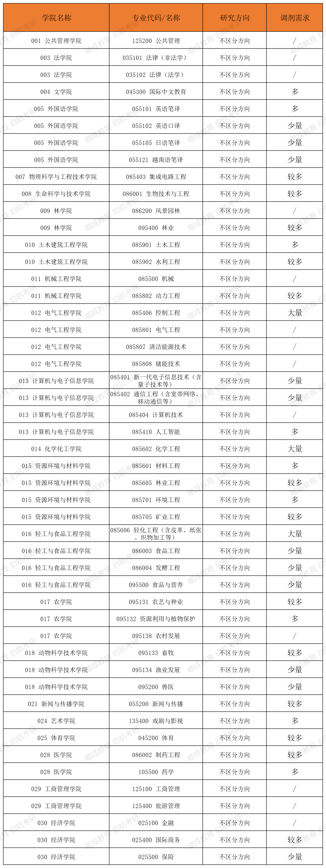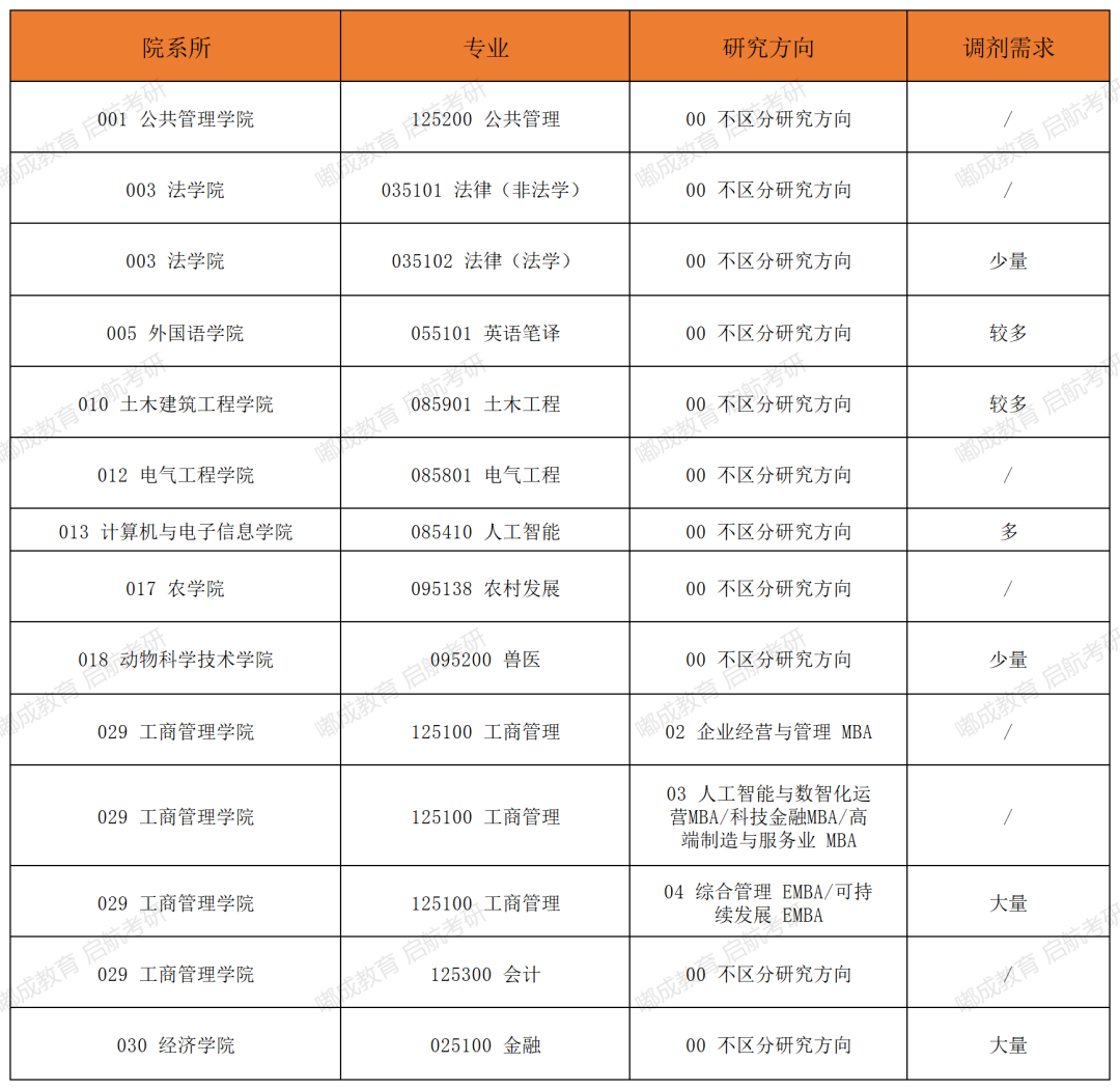 广西大学2026考研各专业缺额情况统计一、专业型硕士